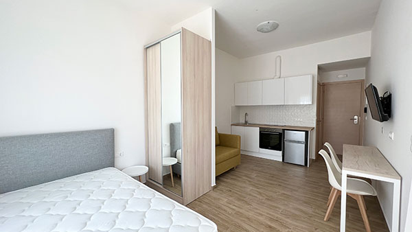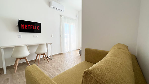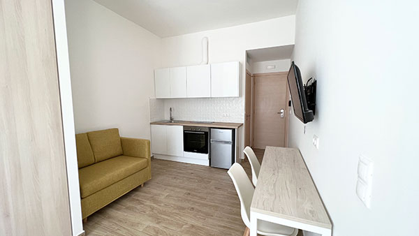 Τα διαμερίσματα είναι πολυτελή με μοντέρνα νεανική και μίνιμαλ διακόσμηση. Διαθέτουν όλες τις σύγχρονες ανέσεις και είναι πλήρως επιπλωμένα και εξοπλισμένα με έπιπλα και ηλεκτρικές συσκευές.